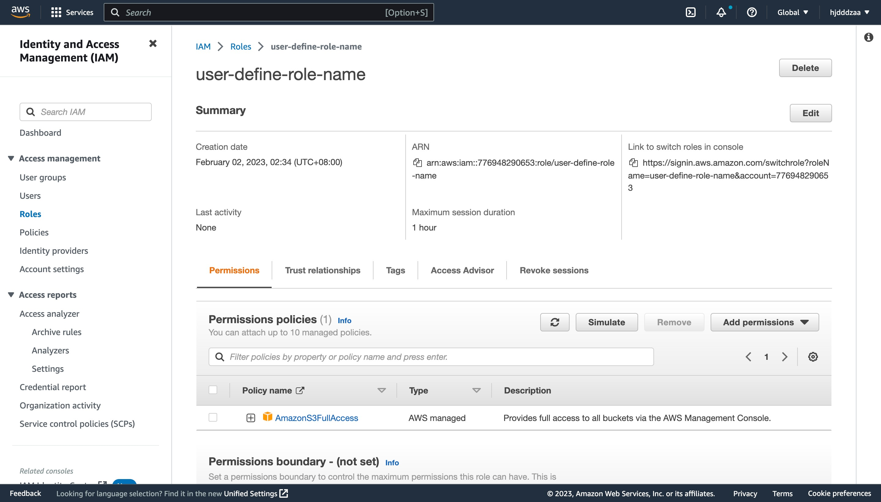 - Click on the role name in the list of roles. Copy the value of the ARN from the Summary section to provide the value in SelectDB Cloud.