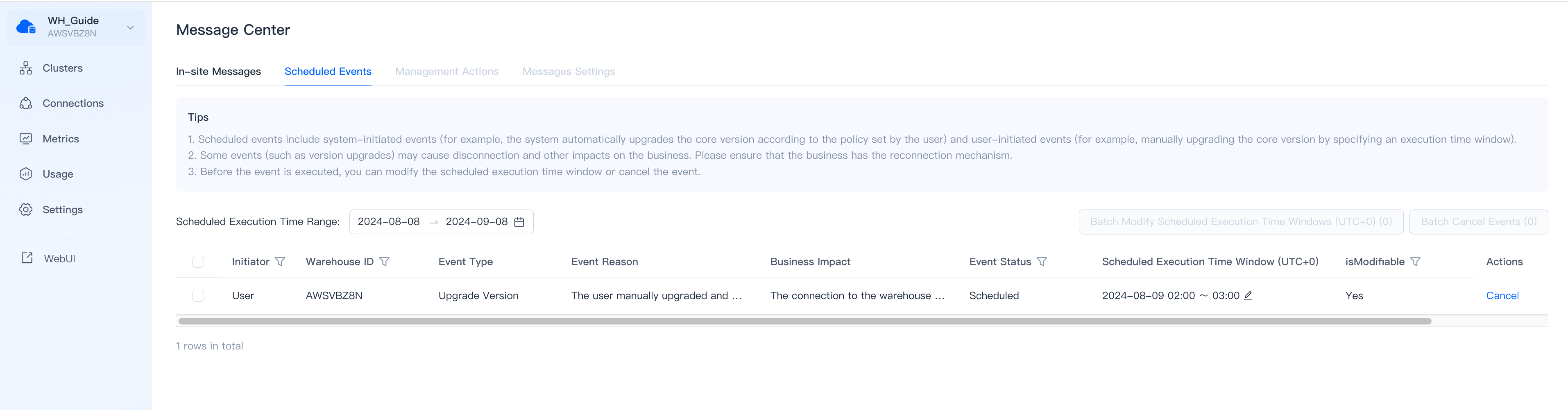 - Scheduled events include system-initiated events (for example, the system automatically upgrades the core version according to the policy set by the user) and user-initiated events (for example, manually upgrading the core version by specifying an execution time window).