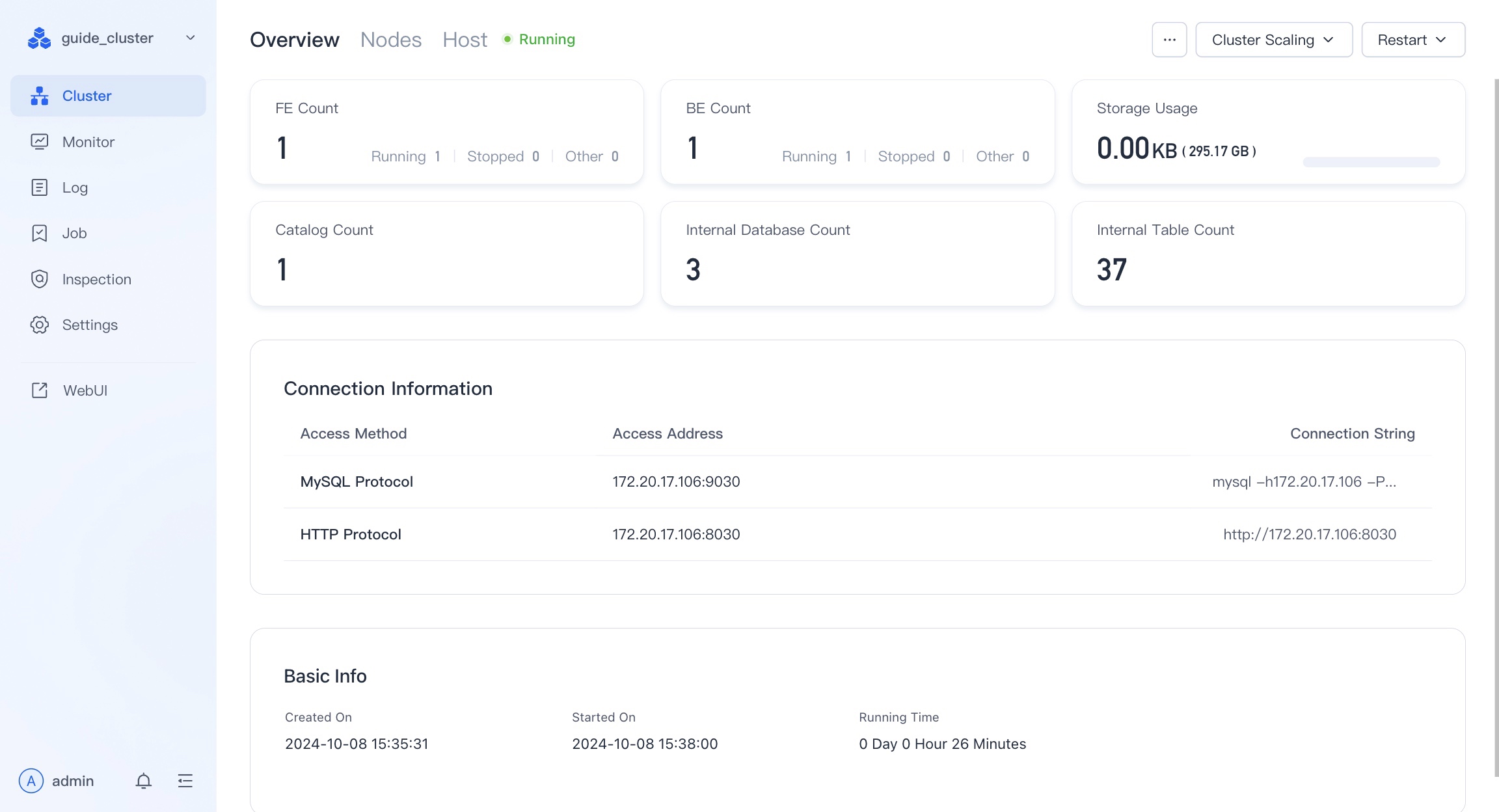 - Login : Use different database users to log in to the cluster in the WebUI.