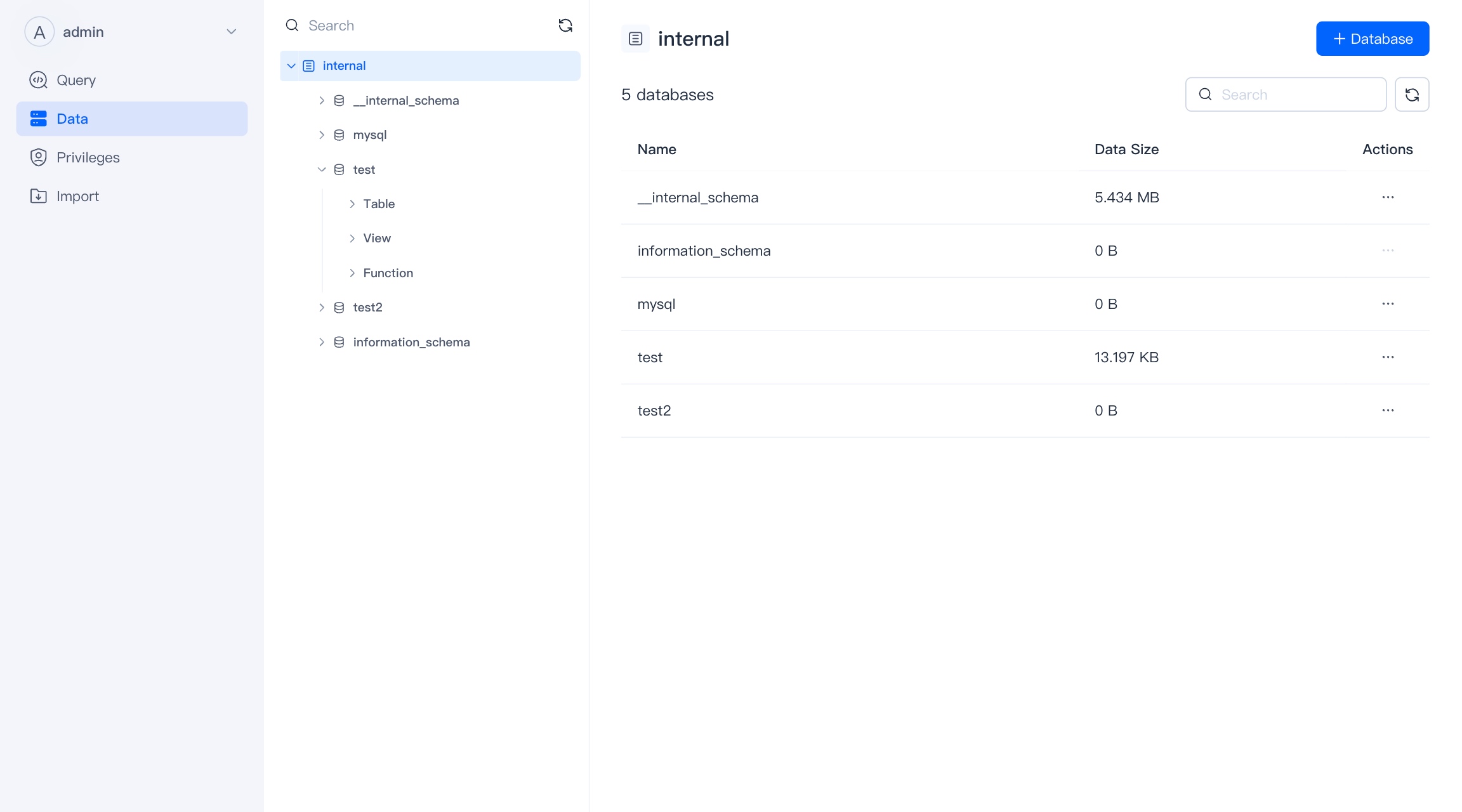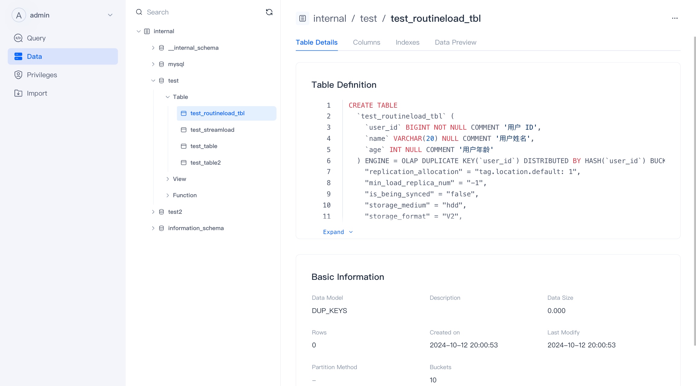 2、 Add, delete and modify data, including creating and deleting database objects, modifying storage strategies, etc. This part of the functionality is still being implemented and is temporarily unavailable.