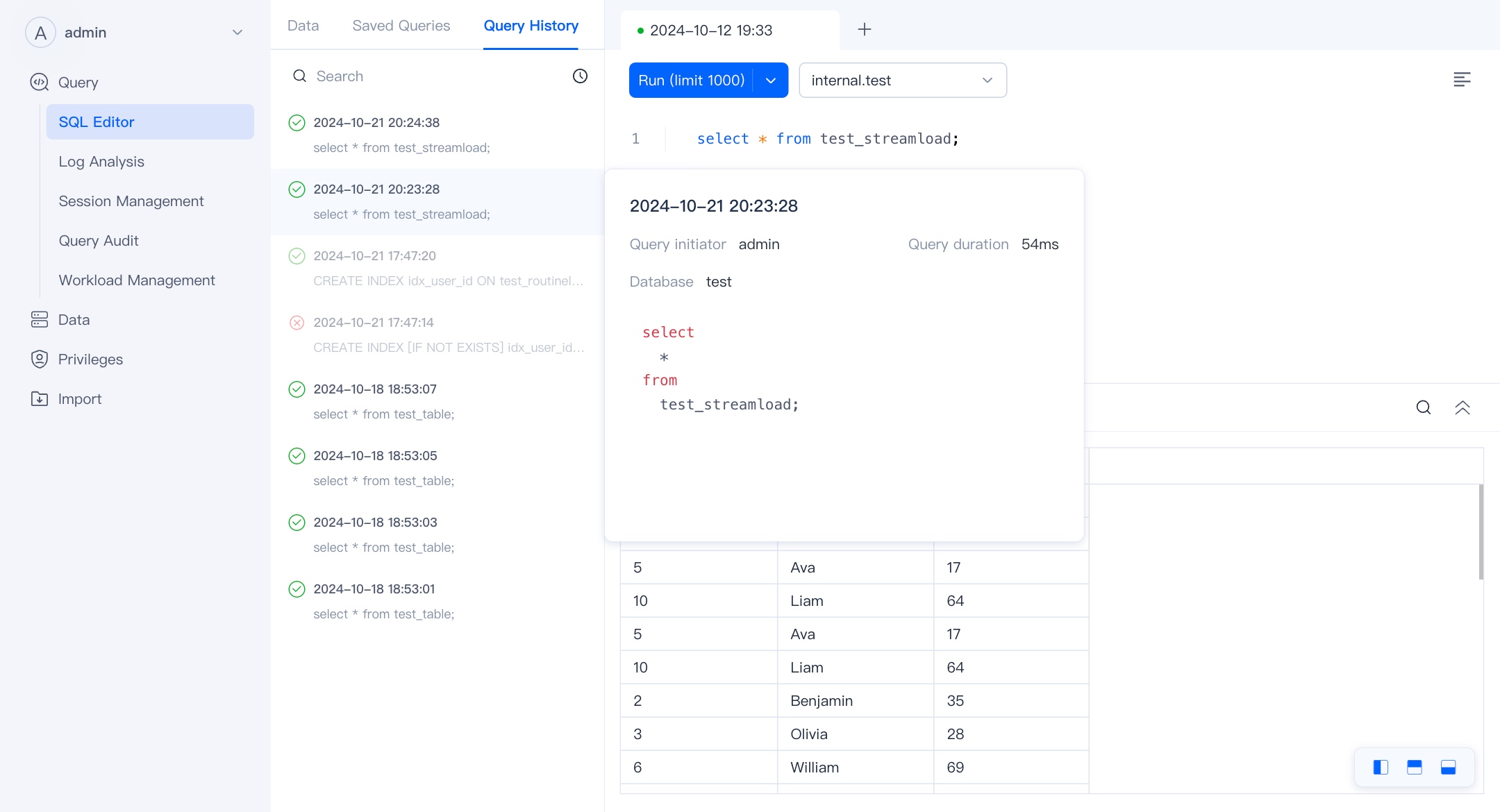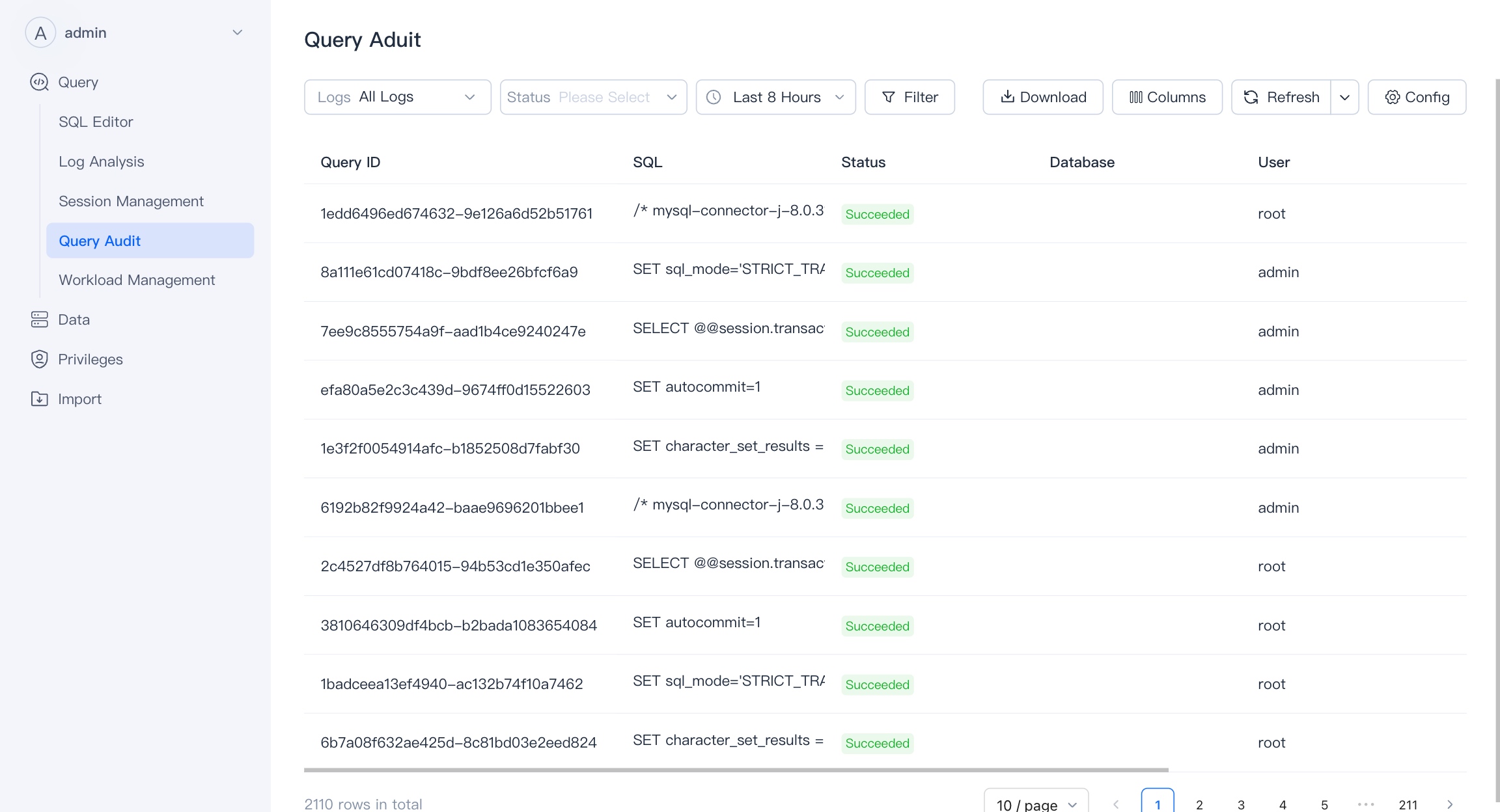 - Query Audit : A one-stop query history auditing tool, capable of filtering slow queries and viewing their profiles.